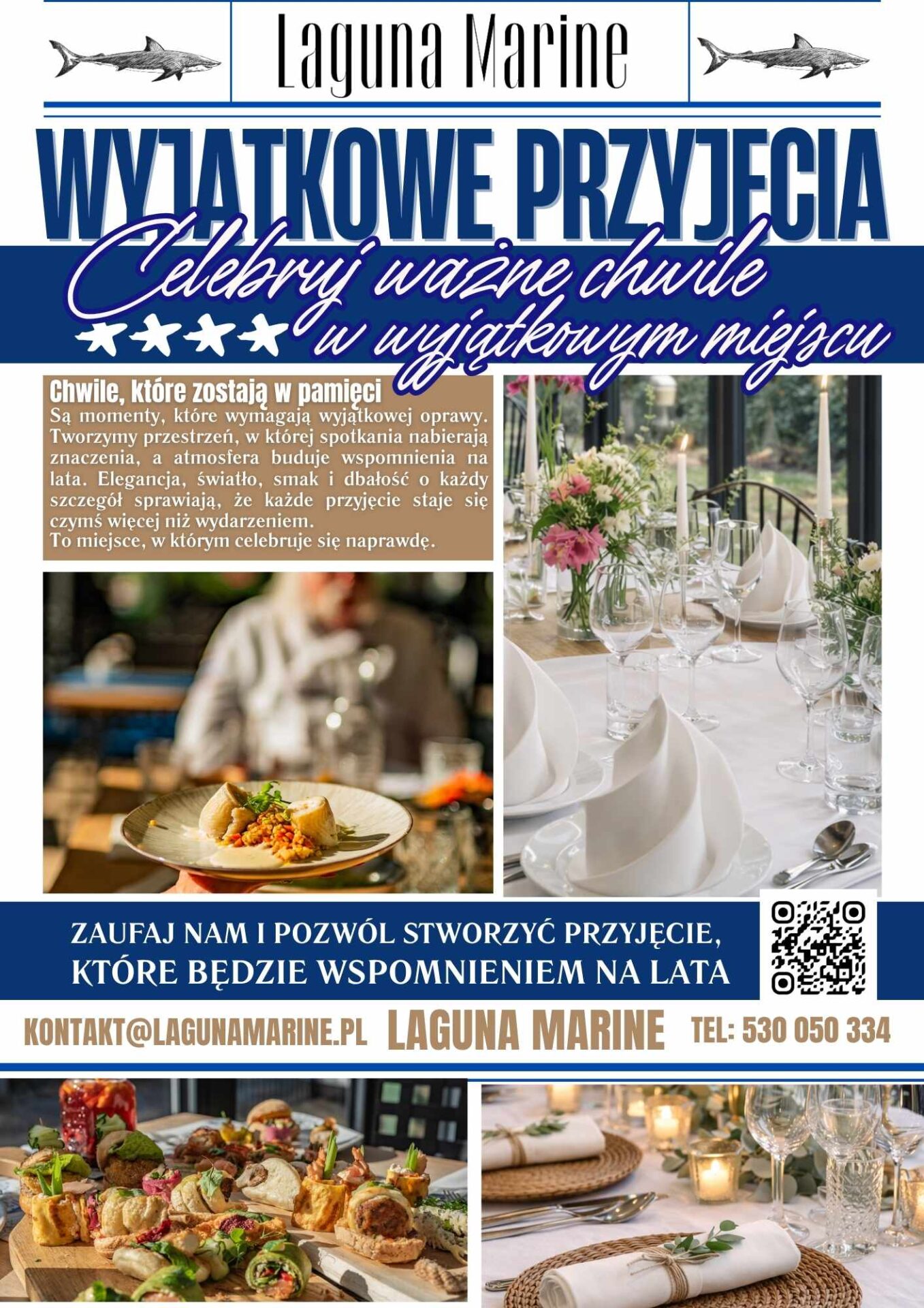 Restauracja Laguna Marine to idealne miejsce na organizację eleganckiego i niezapomnianego spotkania. Oferujemy wykwintne menu, piękną nadmorską scenerię oraz profesjonalną obsługę, która zadba o każdy szczegół uroczystości.